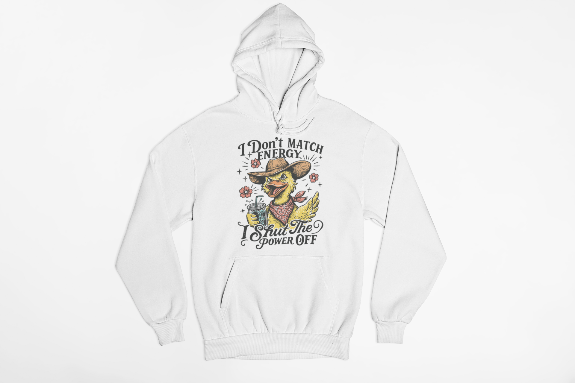 I Don’t Match Energy, I Shut the Power Off Funny Duck Hoodie – Sarcastic Western Graphic Sweatshirt, Attitude Humor Pullover, Cowboy Duck Unisex Heavyweight Fleece